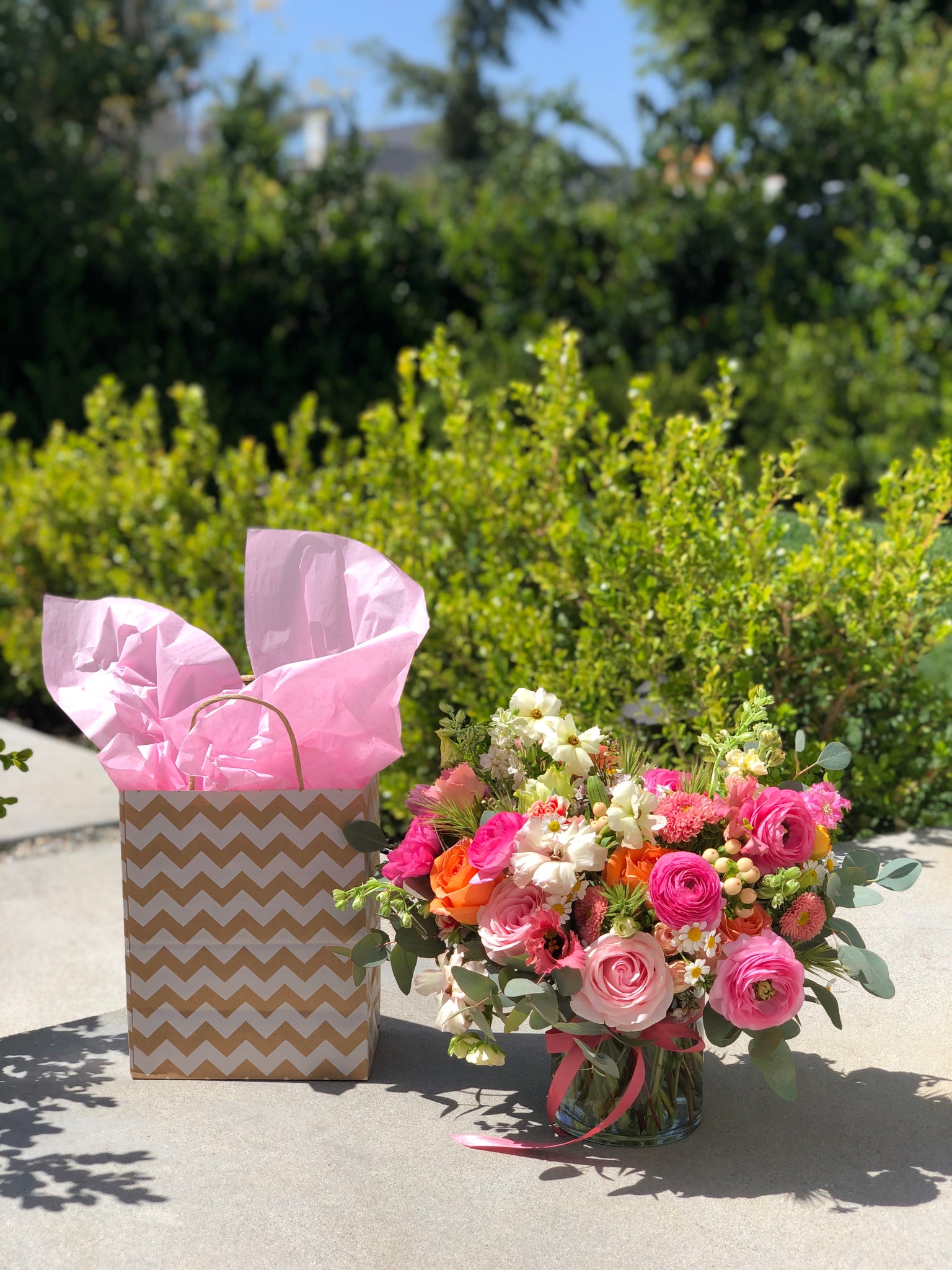 The arrangement delivered to your recipient may not be identical to the photos shown on this page. We will do our best to use the same flowers (and vessel for vase arrangements) but may make substitutions due to seasonality. Any substitutions will represent a similar aesthetic as shown in the photos on this page.